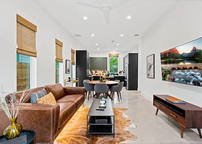 The Stylish 2 Bedroom Retreat in South Austin is a sophisticated haven that perfectly balances contemporary elegance with Southern warmth. Located just 6 km from the delightful Zilker Zephyr Miniature Train, this retreat is an ideal base for exploring the vibrant local attractions, making it a must-visit for families and travelers alike. Strategically located, the Stylish 2 Bedroom Retreat places you within easy reach of Austin's famous attractions and entertainment hot spots, ensuring that guests can effortlessly navigate the city's vibrant scene. Just a short drive away, you can explore cultural landmarks, parklands, and the lively downtown district. Excellent public transport options are nearby, providing additional convenience for those wishing to explore the broader Austin area.
